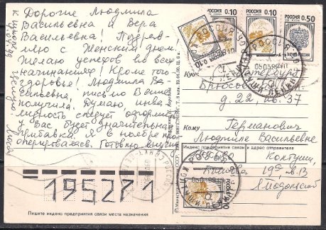 Открытка С праздником 8 марта! Выпуск 23.04.1990 год, прошла почту
