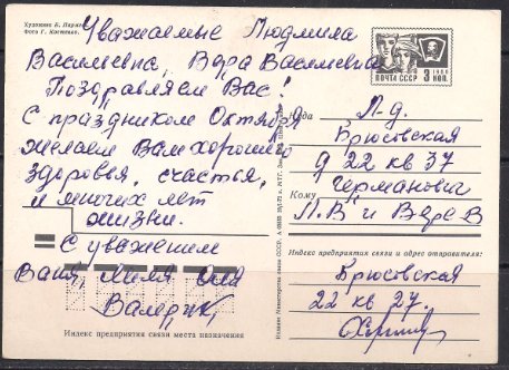 Открытка С праздником Октября! выпуск 14.03.1972 год, подписана