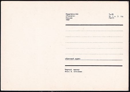 Открытка Собаки. Черный терьер. Издательство Планета. Выпуск 1969 год