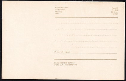 Открытка Собаки. Ирландский сеттер. Издательство Планета. Выпуск 1969 год