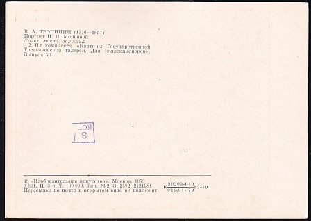 Открытка В.А. Тропинин. Портрет Н.И. Морковой. Выпуск 1979 год