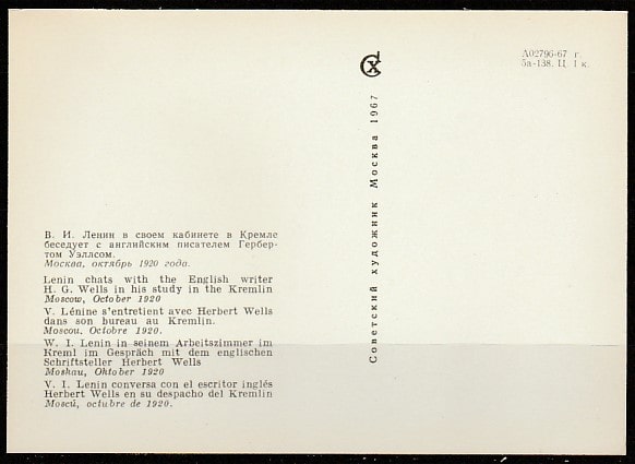 Открытка. В.И. Ленин беседует с Гербертом Уэллсом, "Советский художник", 1967 год.