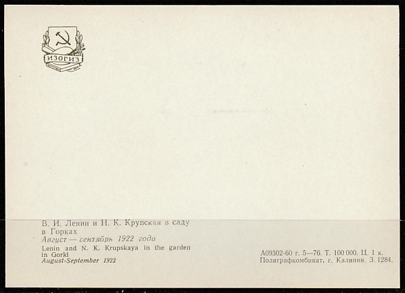 Открытка. В.И. Ленин и Н.К. Крупская в Горках, "ИЗОГИЗ", 1960 год.