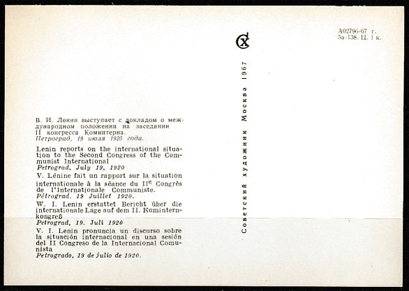 Открытка. В.И. Ленин на заседании II конгресса Коминтерна, "Советский художник", 1967 год.