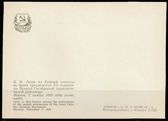 Открытка. В.И. Ленин во время празднования II годовщины ВОСР, "ИЗОГИЗ", 1960 год.