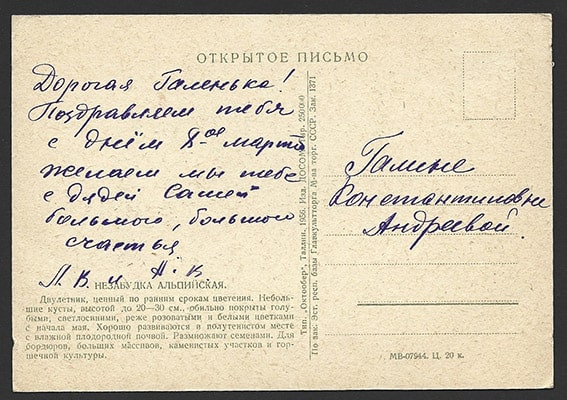 Открытое письмо 1956 год. Подписано. С Праздником 8 марта!
