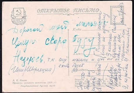 Открытое письмо А.К. Лашин. Проделка сельского живописца. Выпуск 1955 год (подписана)