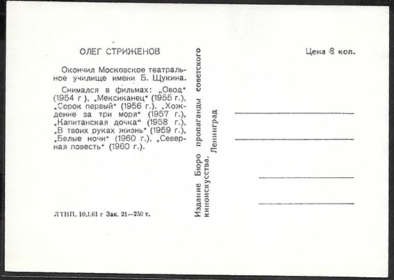 Открытое письмо. Актер Олег Стриженов, 1961 год