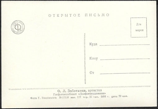 Открытое письмо. Артистка О.Л. Заботкина. 1956 год.