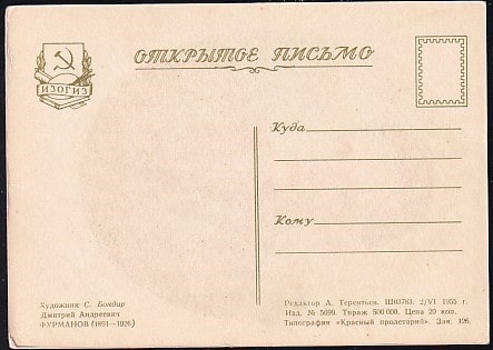 Открытое письмо Д.А. Фурманов (худ. С. Бондар). Выпуск 2.06.1955 год