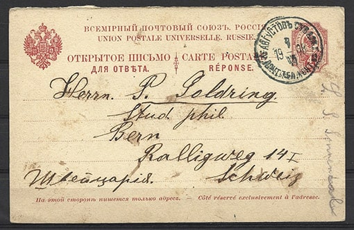 Открытое письмо для ответа прошло почту, Швейцария 1908 год