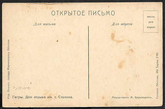 Открытое письмо. Гагры. Дом отдыха им. т. Сталина
