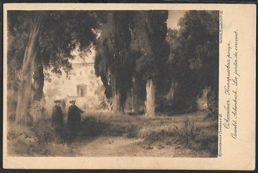 Открытое письмо. Худ. О. Ахенбах. Кипарисовая роща