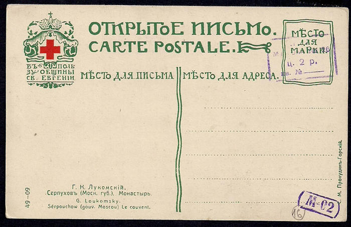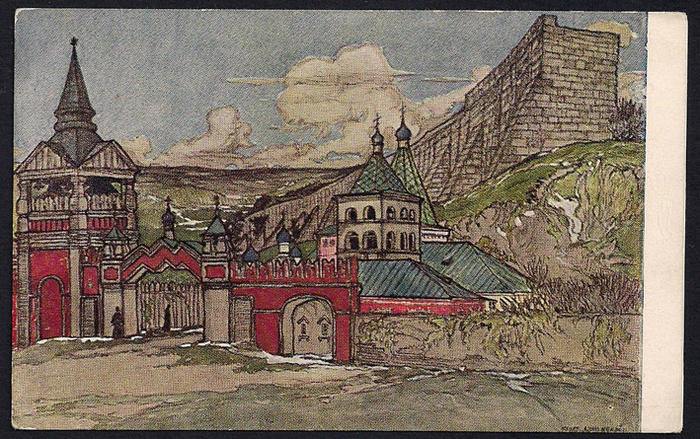 Открытое письмо. Художник Лукомский. Серпухов. Монастырь. 1914 г.