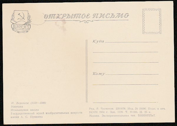 Открытое письмо. Картина Веронезе "Минерва", 24.07.1954 год.