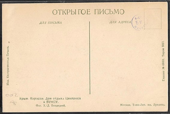 Открытое письмо. Крым. Карасан. Дом отдыха Цекпроса и ВУКСУ