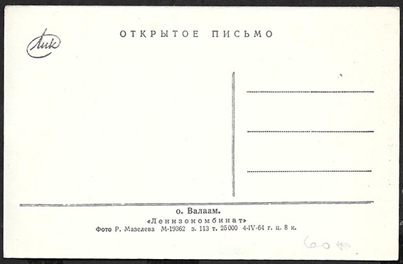 Открытое письмо. о. Валаам, 1964 год