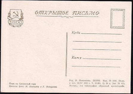 Открытое письмо "Парк на Сухумской горе". Выпуск 28.04.1955 год