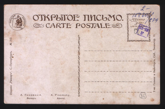 Открытое письмо. А. Писемский. Вечер. 1910 г.