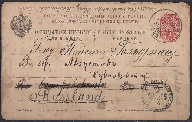 Открытое письмо. Россия ВПС 1905 год, прошло почту (ю)