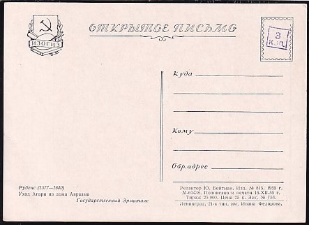 Открытое письмо "Уход Агари из дома Авраама" Петер Пауль Рубенс. Выпуск 15.12.1955 год