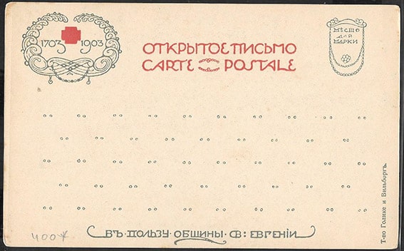 Открытое письмо В пользу Общ. Св. Евгении. Кабинет Петра I. Резная рама, 1903 год