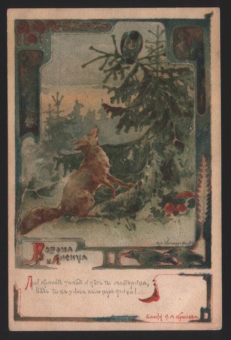 Открытое письмо. Ворона и лисица. изд. Алекс. Улыбина СПб. 1910 г.