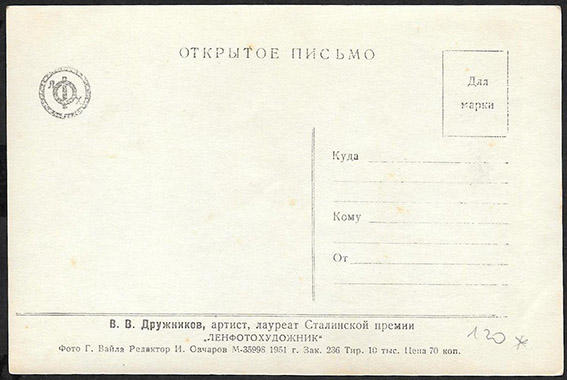 Открытое письмо. В.В. Дружников, артист, лауреат Сталинской премии, 1951 год