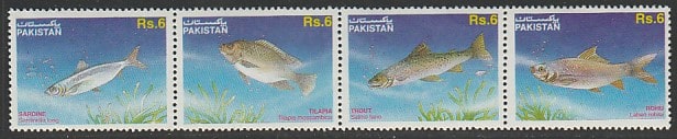 Пакистан 1995 год. Рыбы, сцепка из 4 марок (269.939)