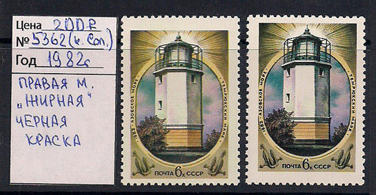 СССР 1982 год. Разновидность. Пара марок Темрюкский маяк