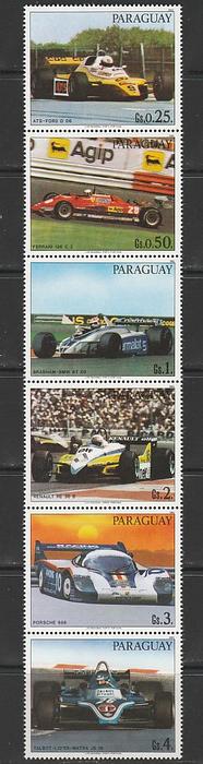 Парагвай 1983 год. Гоночные автомобили, сцепка из 6 марок