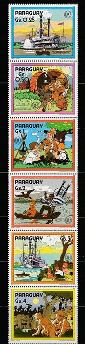 Парагвай 1985 год. "Приключения Тома Сойера", сцепка из 6 марок