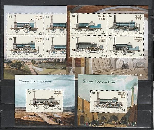 Паровозы, Невис 2014 г, 2 малых листа + 2 блока