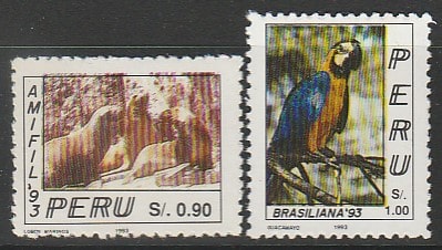 Перу 1993 год. Филвыставки: национальная "AMIFIL", международная "BRASILIANA", 2 марки (277.1494)