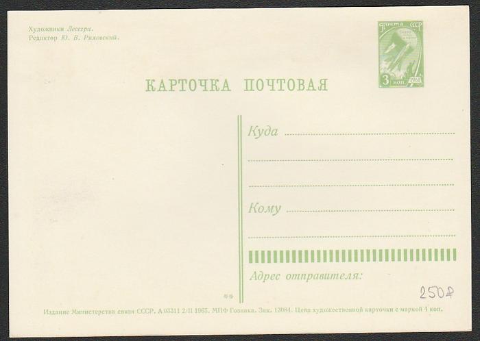 ПК 12 апреля - День космонавтики. (Лесегри) Выпуск 02.02.1965 г. № 920