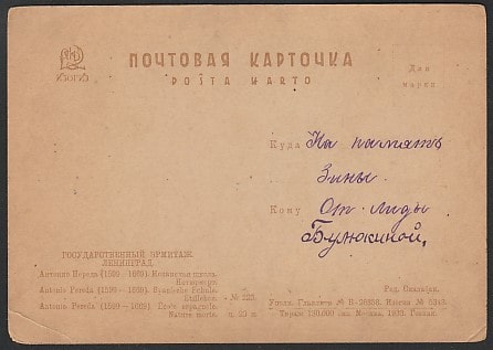 ПК 1933 год. Ленинград. Эрмитаж. Художник Антонио Переда, натюрморт