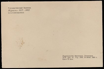 ПК 1958 год. Эрмитаж. Картина Мурильо Благовещение