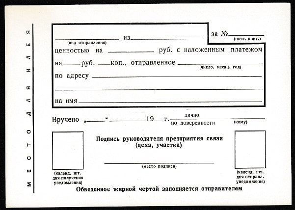 ПК 1991 года. Уведомление о вручении почтового отправления с маркой 1988 года (ном. 10 к.) (Ю)