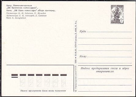 ПК "60 лет Азербайджанской ССР". Баку. Памятник "26 бакинских комиссаров". Выпуск 8.01.1980 год