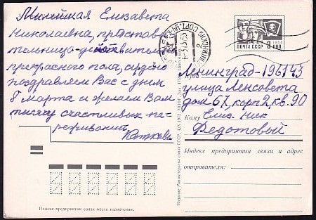 ПК 8 марта! (худ. И. Дергилев) Выпуск 4.10.1972 год, прошла почту