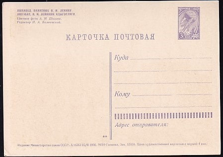 ПК "Ашхабад. Памятник В. И. Ленину". Выпуск 25.02.1966 год