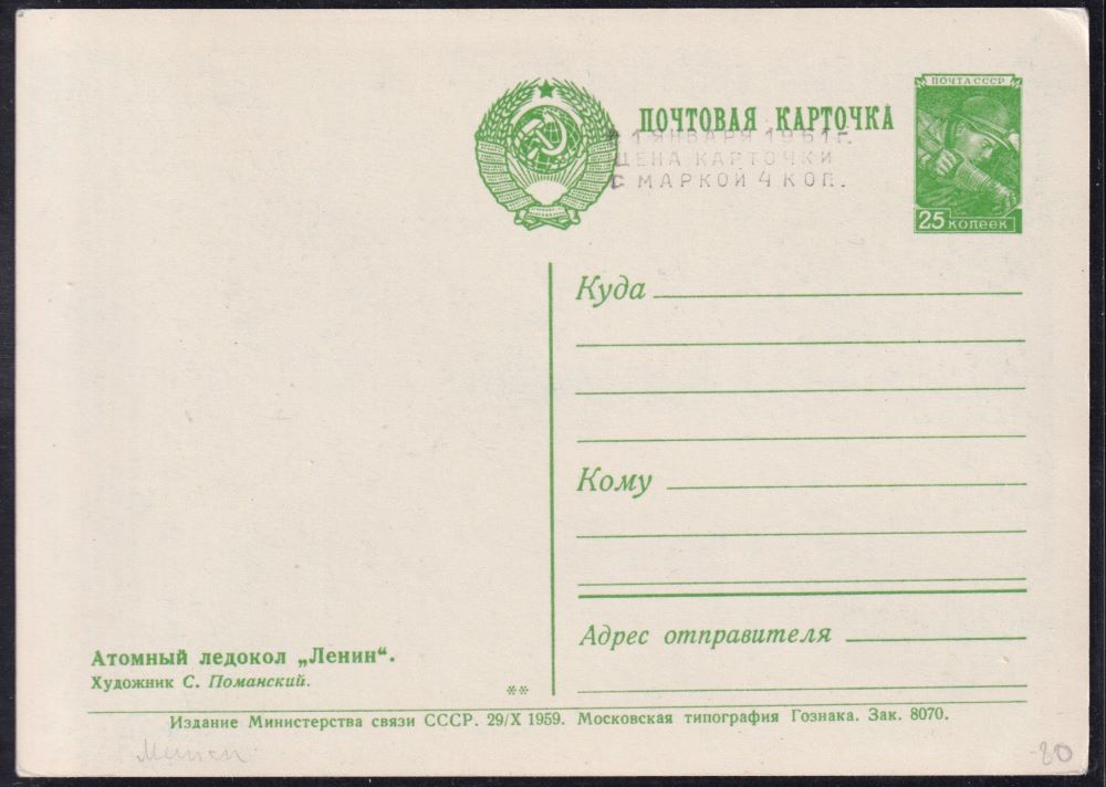 ПК. Атомный ледокол "Ленин", 29.10.1959 год, переоценка 1.01.1961 год