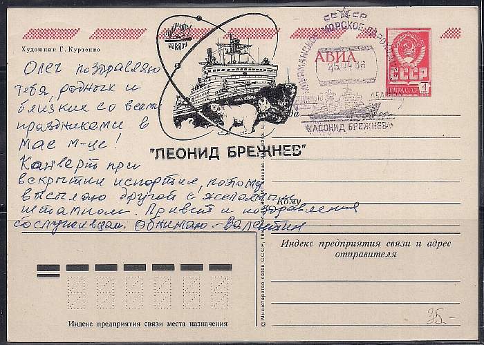 ПК АВИА со СГ. Мурманское морское пароходство. Ледокол "Леонид Брежнев" 25.04.1986 год, Мурманск, прошла почту