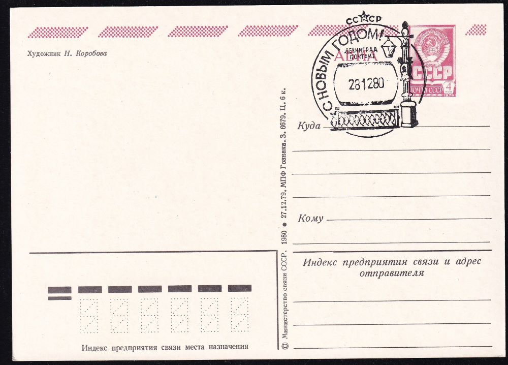 ПК Авиа со спецгашением - С Новым годом, 28.12.1980 год, Ленинград