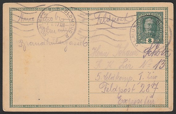 ПК Австрии 1917 год. Император Австрии Франц Иосиф I, ном. 8 геллеров, п/почту