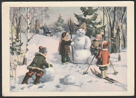 ПК. Дети лепят снеговика, 1961 год, прошла почту