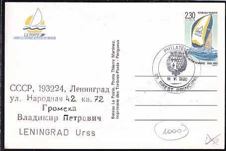 ПК Французская Республика. Кругосветная регата, 1990 год, прошла почту