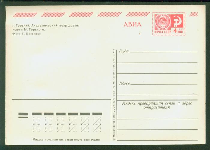 ПК г. Горький. Академический театр драмы. Выпуск 30.01.79 год, № 6925
