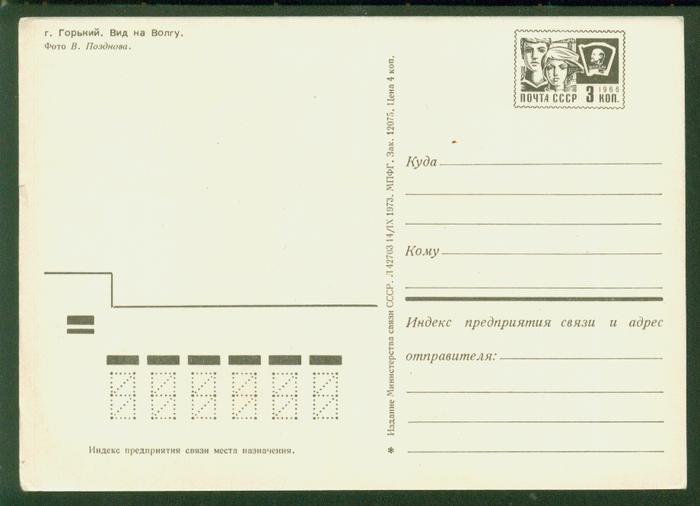 ПК г. Горький. Вид на Волгу. Выпуск 14.09.73 год, № 3368