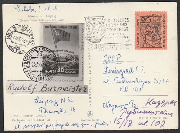 ПК ГДР. Музей Георгия Димитрова в Лейпциге, спецгашение, п/почту в 1959 году.